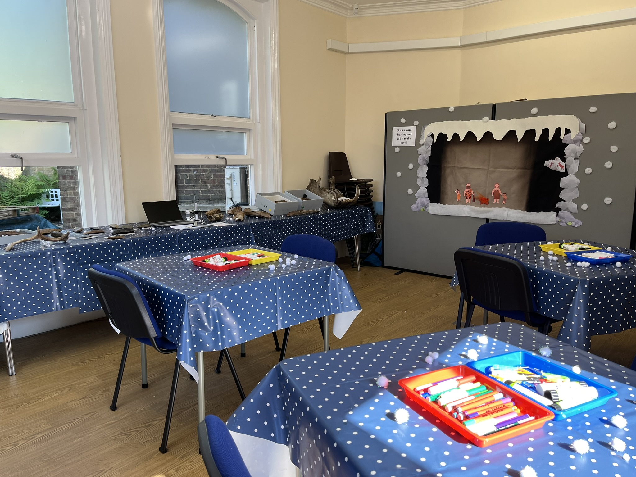 I have helped small museums share their palaeontology collections through collaborating to run fossil days/events. My most recent was an ice age themed morning, sharing my local museums ice age collection, including mammoth teeth, antlers and hand axes. Along with build and 3D mammoth and add a cave drawing the cave wall.