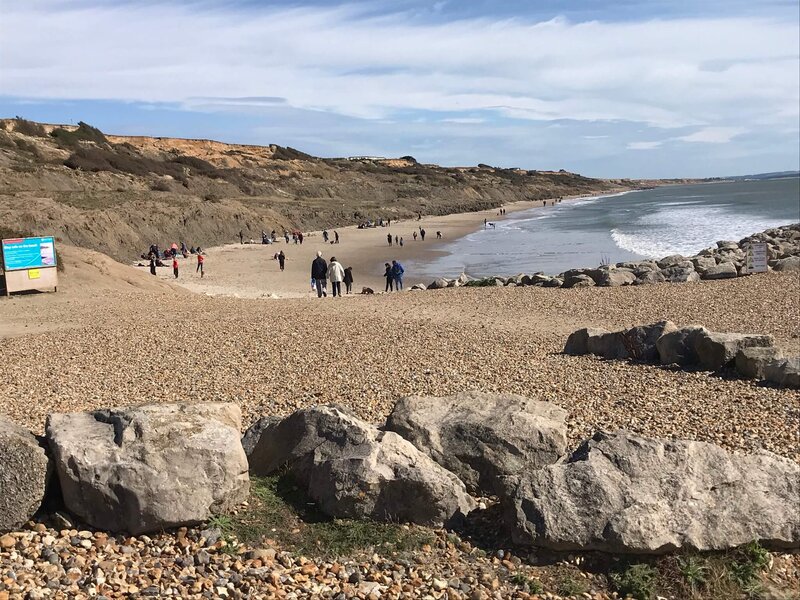 The cliffs are very soft here, the sea comes and washes the fossils out of the cliff and then they get caught up amongst the shingle. Therefore, the best time to visit is after a high tide or storm.