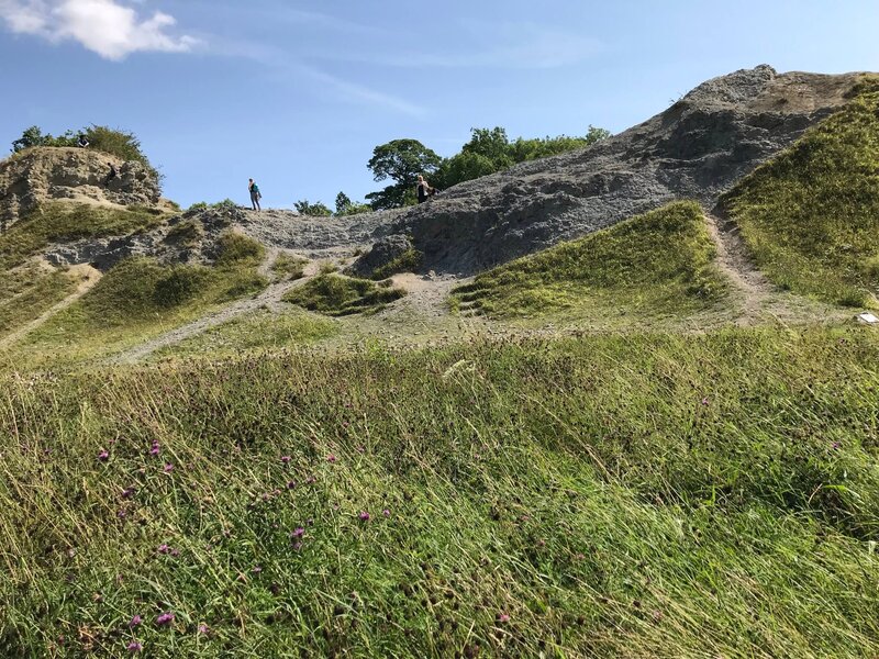 The cliffs are slumped and therefore less hazardous but you still need to be careful, it is not advised to climb on the cliffs.