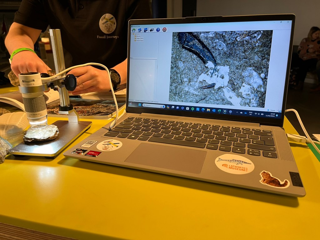 We welcome over 150 visitors to explore fossils and ask us questions about what we do and how we got into palaeontology! Visitors handled real fossils from the collection as well as replica fossils from the museums education department. They found out what fossils can be found around Birmingham, had a go with the digital microscope and found their own fossils in gravel!