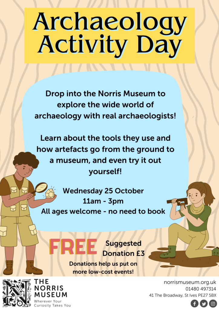 Archaeology Activity Day (Meet the Archeologists!) – Norris Museum, St Ives 25th October 2023.